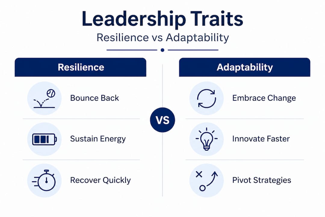 Resilience is your capacity to recover after adversity, while adaptability is your skill at pivoting to entirely new approaches when conditions change. Both are essential, but in AI-driven volatile environments, leaders need to lean more heavily on adaptability while maintaining resilience as their operational foundation.