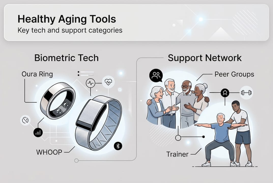| Biometric tracking | Oura Ring, WHOOP, Apple Watch | Daily recovery and sleep data |
