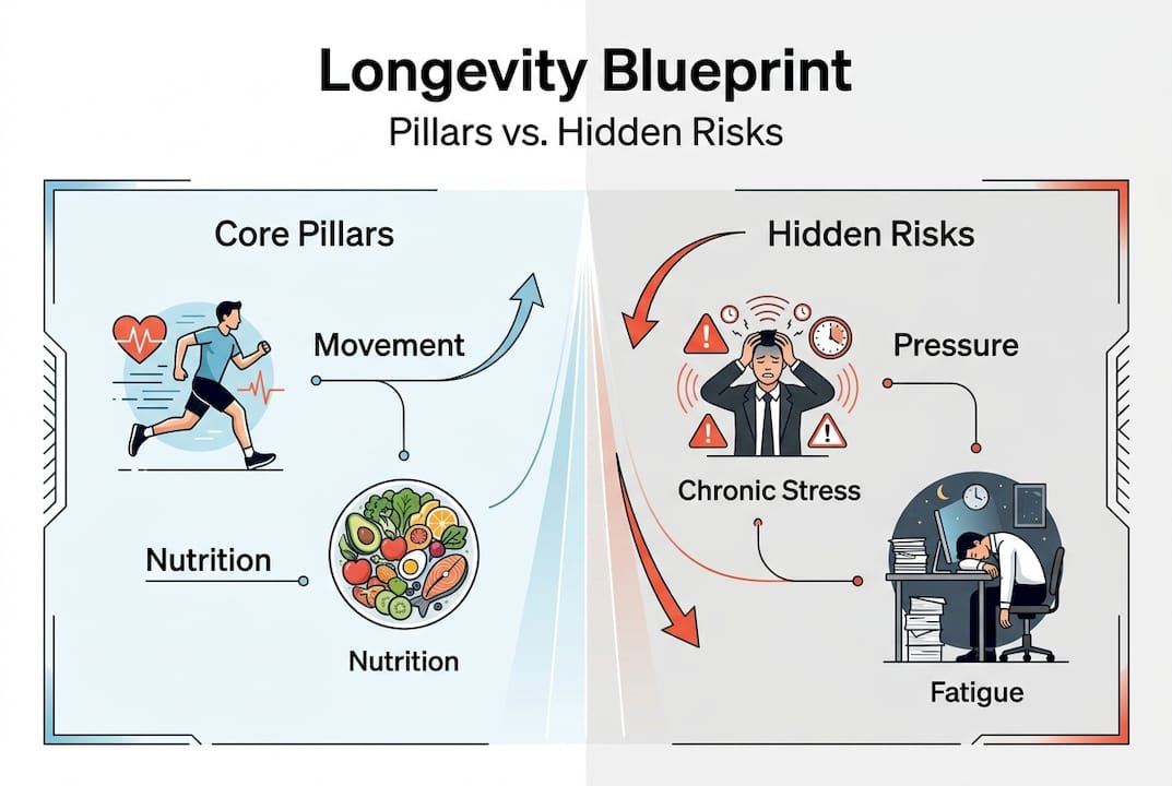 91% of healthy aging is within your personal control, yet most executives are unknowingly accelerating their own decline. Chronic stress, poor recovery habits, and a fixation on short-term output quietly erode the biological foundation that sustains peak performance. Longevity is not about living to 100. It is about staying sharp, energized, and effective through the decades that matter most to your career and legacy. This article breaks down why healthspan is the real metric to track, how stress silently ages you, and which frameworks give you a measurable edge right now.