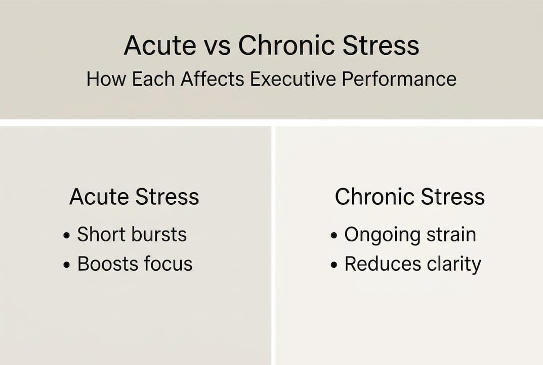 - Unmanaged stress impairs decision-making, focus, and emotional regulation in executives.