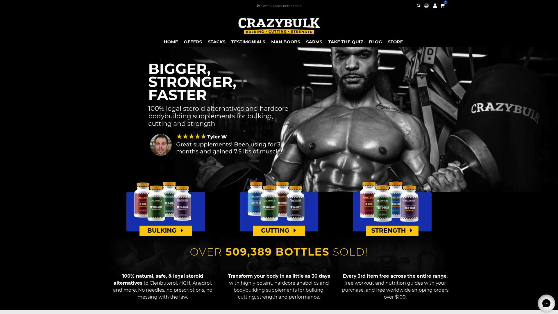 CrazyBulk markets legal steroid alternatives and bodybuilding supplements aimed at rapid muscle and strength gains without prescriptions. Their pitch centers on natural formulas, fast change within 30 days, and a large sales footprint of over 509,389 bottles sold.