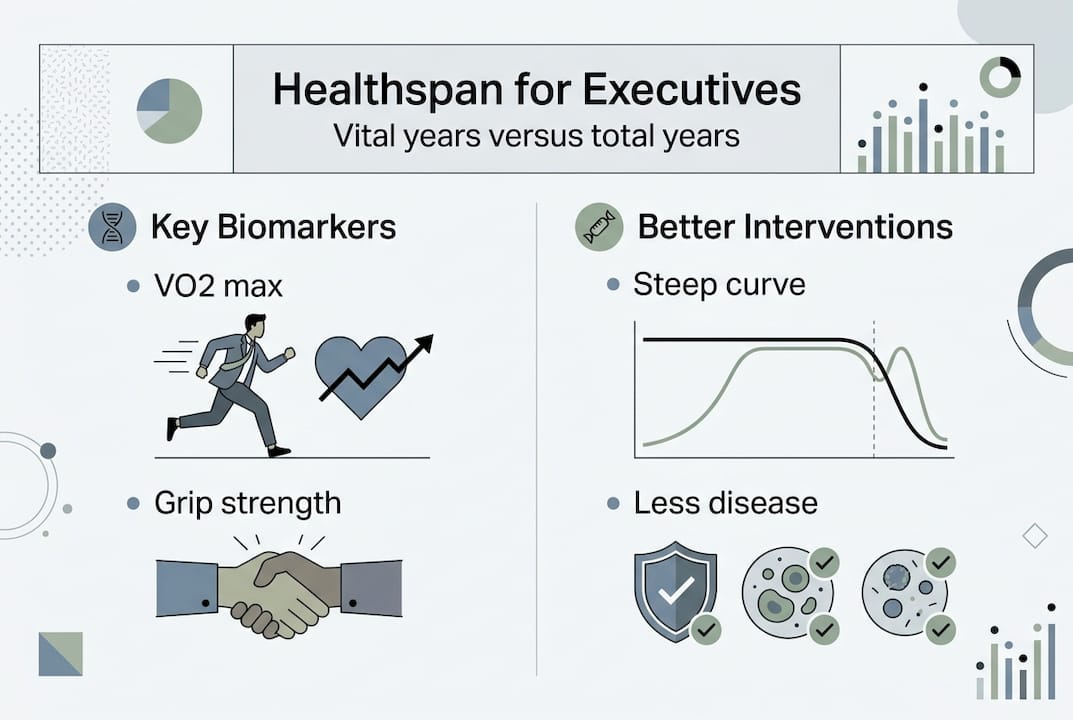 Most executives obsess over adding years to life, but recent research reveals a troubling truth: many lifespan-extending interventions simply prolong frailty rather than vitality. If you're a high-performing leader, the metric that truly matters isn't how long you live but how many peak-performance years you sustain. Healthspan, the period of life spent in optimal physical and cognitive function, determines whether your final decades are spent leading or declining. This article shows you how to compress morbidity, track the right biomarkers, and implement executive-grade protocols that extend your competitive edge without sacrificing quality for quantity.